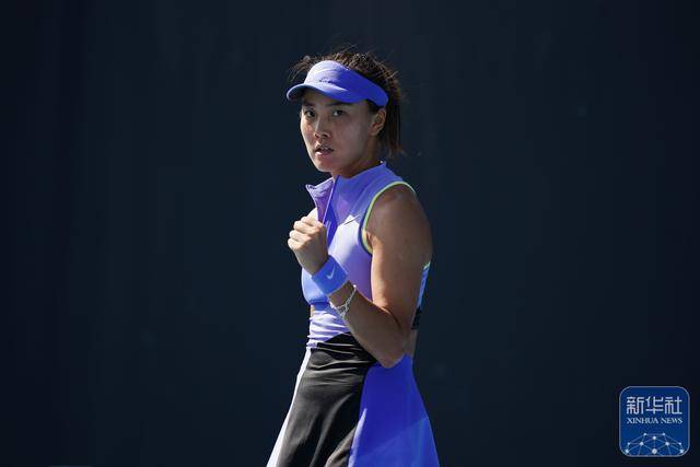 ↑白卓璇在比赛中庆祝得分。最终,她在女子单打资格赛第二轮比赛中2比0战胜法国选手帕凯,晋级决胜轮。