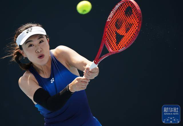 ↑袁悦在比赛中回球。最终,她在女子单打资格赛第二轮比赛中2比1战胜阿根廷选手卡莱,晋级决胜轮。