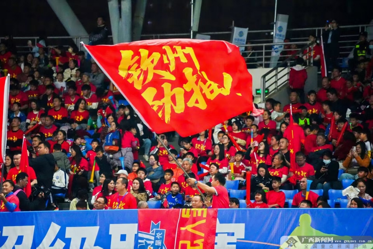 终场哨响的那一刻,全场沸腾!无论是获胜球队的拥趸,还是为家乡球队呐喊的球迷,都难掩心中的激动,大家挥舞着手中的旗帜,齐声高呼:“钦州,劲抽!”