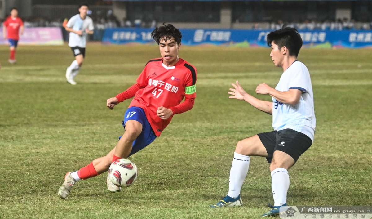 主场作战的钦北区队与劲旅灵山县队狭路相逢,在绿茵场上展开激烈角逐。两队你来我往、势均力敌。最终,灵山县队在点球大战中以4∶1的比分锁定胜局。