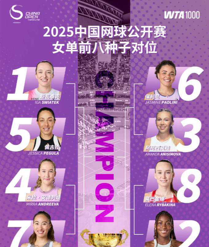 随着阿尼西莫娃夺得中网冠军后,她保持了世界第四的排名,并拉开了与其他选手,特别是米拉-安德烈娃、佩古拉等的积分差距。排名第五至第十的选手分别为米拉-安德烈娃、佩古拉、凯斯、鲍里妮、莱巴金娜和郑钦文。中网赛事的结束也带来了前十名排名的变化:佩古拉上升一位,凯斯下降一位,莱巴金娜上升一位,而郑钦文则略微下滑一位。