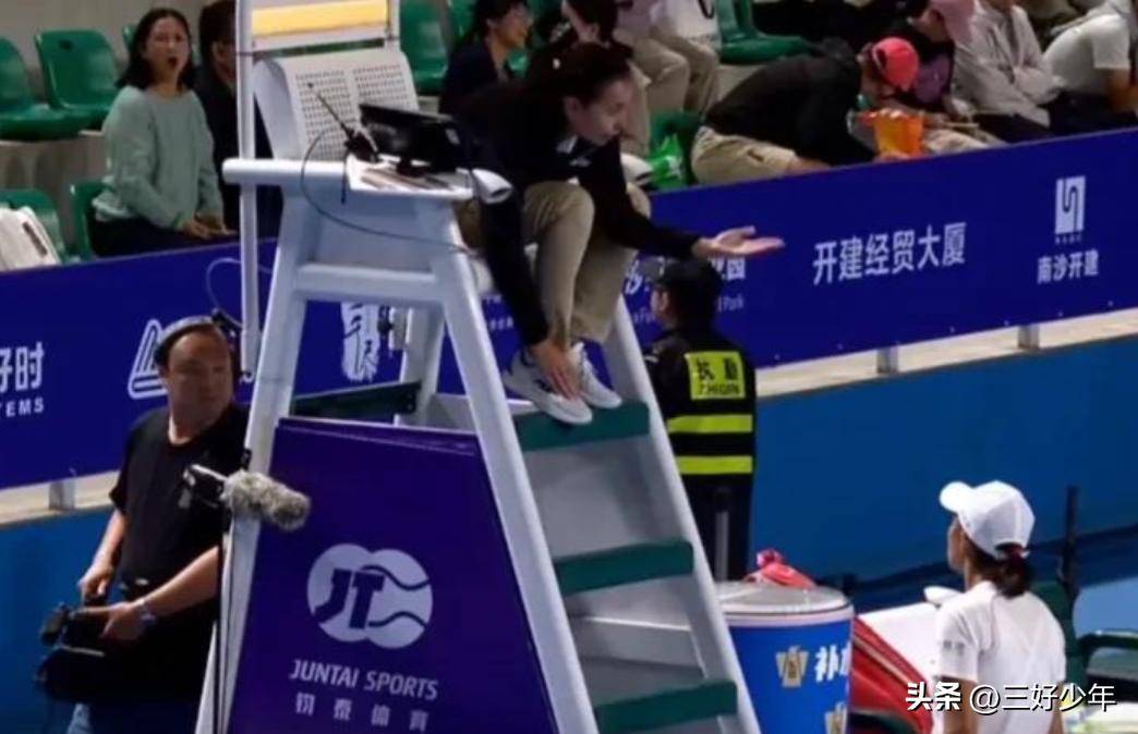 比赛开局并不顺利。现场安保允许观众自由走动,导致人流干扰张帅的节奏。再加上她认为明显出界的球没有被判,主裁判也未改判,使得张帅从3-2领先连丢四局,第一盘告负。盘间,她甚至和教练讨论过是否退赛。
