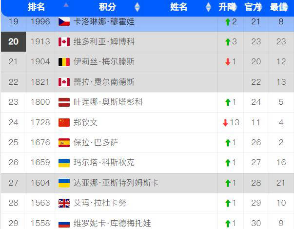 随着无缘年终总决赛,郑钦文去年获得的800积分被清零,同时失去了去年在WTA500东京站夺冠所得的500积分,目前总积分降至1728分,排名下滑至第24位。四个月前,郑钦文曾首次窜升到世界第4位,创造了个人职业生涯最高排名。