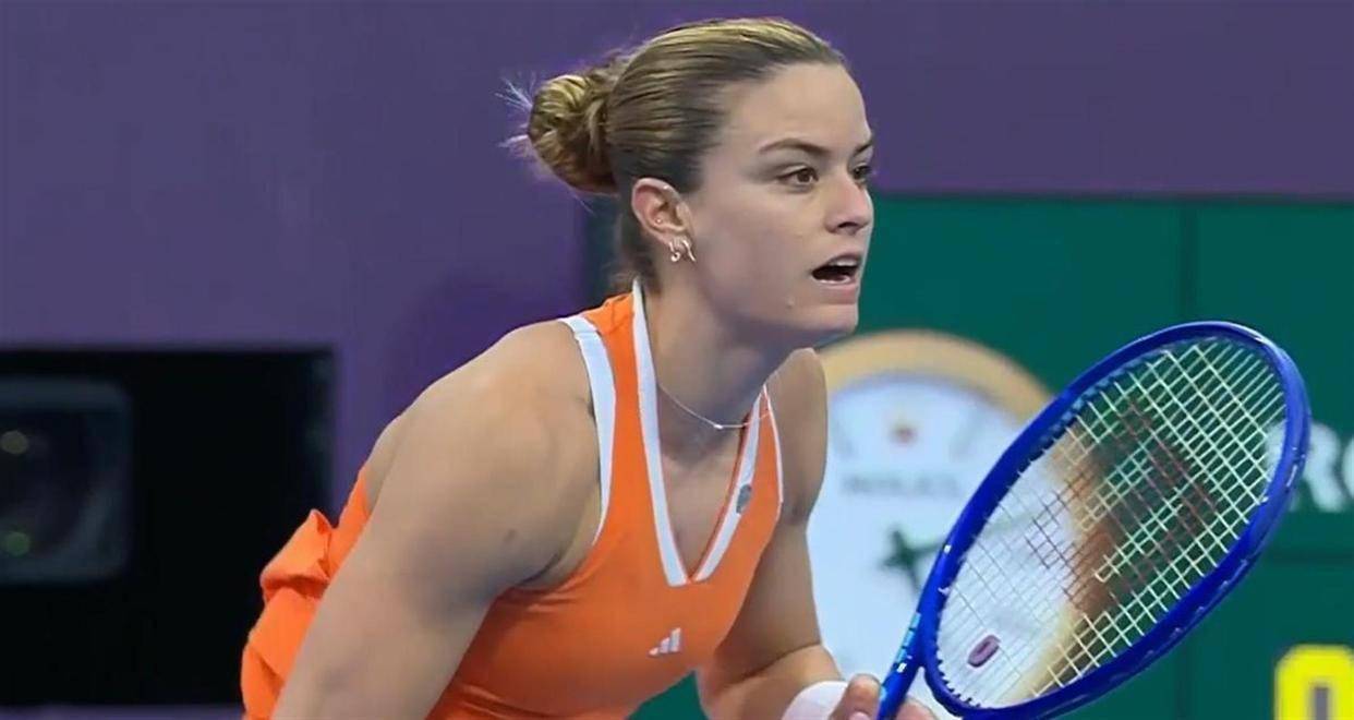 关键的盘末阶段,萨卡里展现出了极强的心理素质。 第十局,她在斯瓦泰克非保不可的发球局中再次完成破发,以6比4扳回一盘,将比赛拖入了决胜盘。 此时,斯瓦泰克的不败纪录已经岌岌可危。